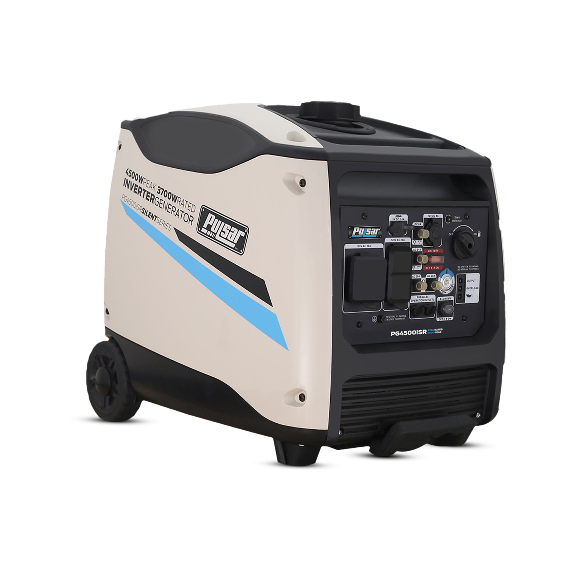 El generador inversor portátil PG4500iSR de Pulsar con arranque remoto es una excelente opción para obtener energía limpia y una portabilidad óptima. Su motor monocilíndrico de 4 tiempos y OHV produce 4500 vatios pico/3700 vatios de potencia en funcionamiento y genera solo 64 dB de sonido, lo que lo hace prácticamente silencioso a solo 10 pies de distancia en comparación con un generador convencional. La capacidad en paralelo le permite hacer funcionar dos generadores PG4500iSR en tándem con el uso de un adaptador para aumentar de manera efectiva la potencia de salida sin las molestias que conlleva tener una unidad mucho más grande. El tamaño compacto y el marco resistente a los impactos con ruedas que nunca se desinflan y manija telescópica hacen que el almacenamiento y la maniobra sean simples.